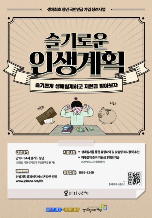 슬기로운 인생계획은 경기도 청년들의 국민연금 조기 가입을 장려하기 위해 탄생한 청년 맞춤형 복지정책입니다.