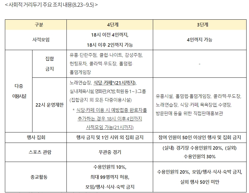 사회적 거리두기 4단계 연장 주요 내용
