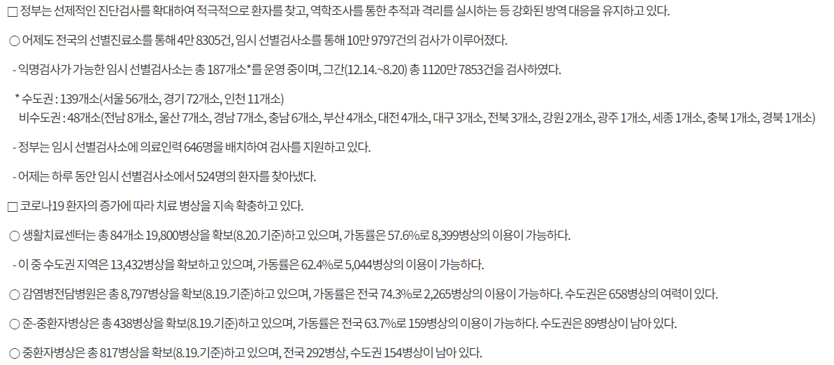 서울. 수도권 지역의 사회적 거리 4단계를 8월 23일(월)부터 9월 5일(일)까지 2주 연장해 코로나19 확산 억제에 주력하겠습니다.