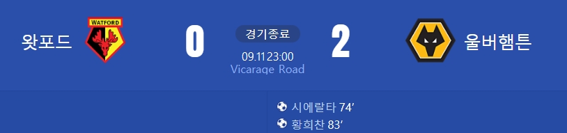 2021.09.11 PM 10:00에 열린 2021-22 EPL의 4라운드 전인 왓포드 VS 울버햄튼 원더러스입니다.